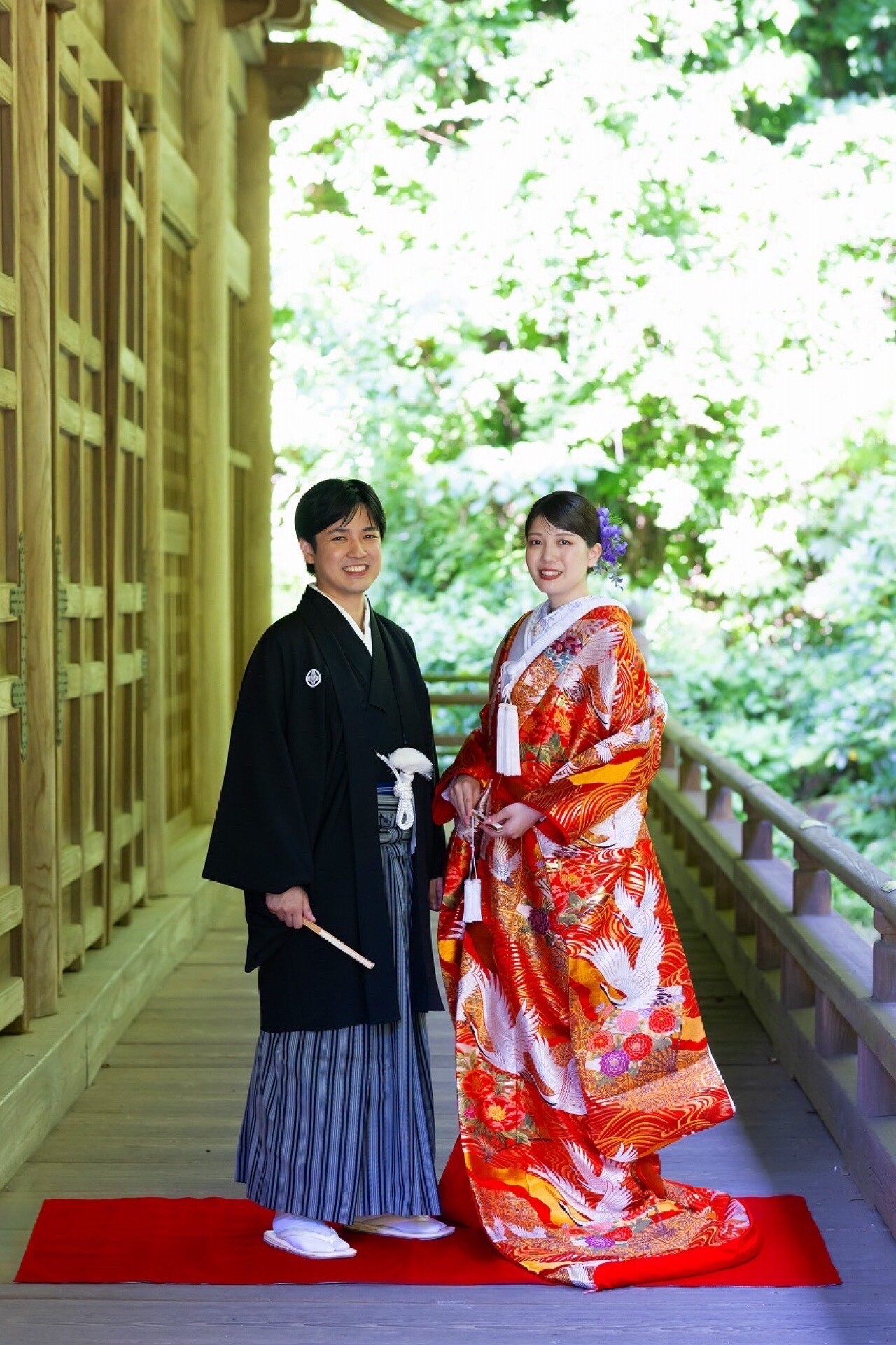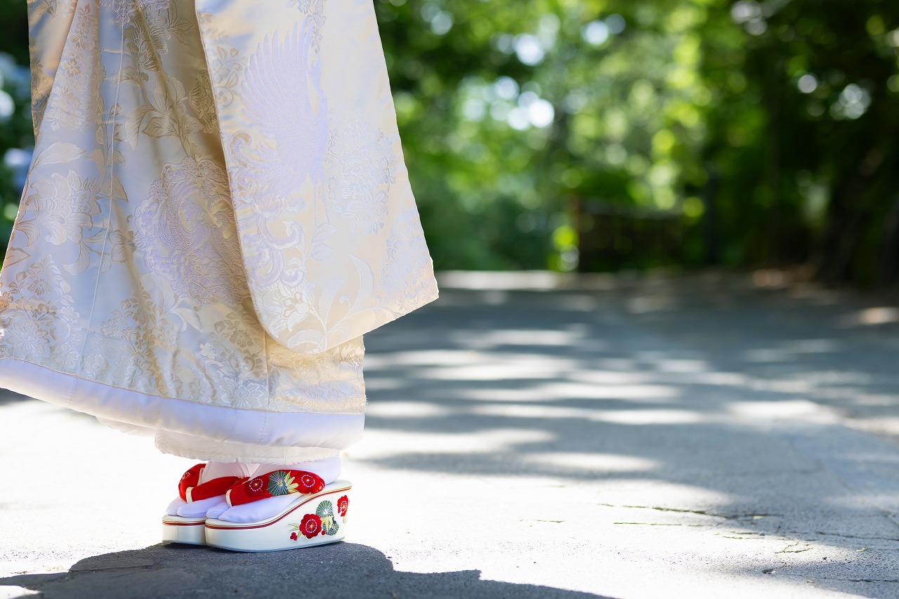 白無垢or色打掛orアンティーク打掛 / 掛下(白) / 長襦袢 / 黒紋付一式 / 衣装小物 / 着付け用小物 / 新婦ヘアセット / 新婦フルメイク / 新婦髪飾り / 新郎新婦衣装着付け / アーティフィシャルフラワーブーケ/ 撮影用小物和傘レンタル / ヘアメイクアテンド / 着付け師同行/ 撮影場所手配 / カメラマン撮影 / レタッチ(カラー補正)/ 撮影データ100カット以上納品 / 妙本寺申請料